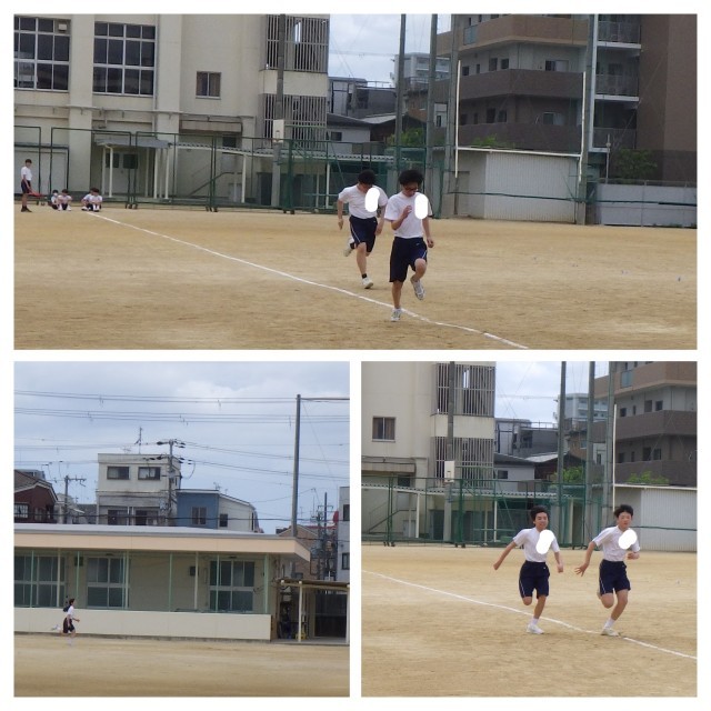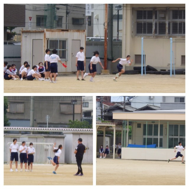 男女ともに運動場にて『50m走』測定に取り組んでいました。