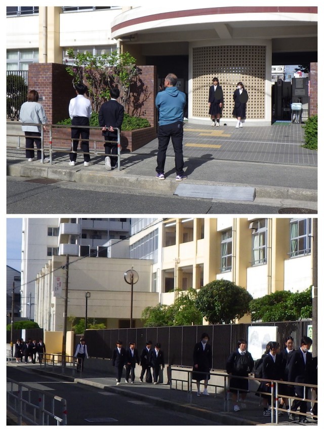今朝は風紀委員生徒による「あいさつ活動」が行われています。