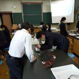 3年家庭科はクッションづくり。 各班とも互いに教えあいながら、上手に電動ミシ...