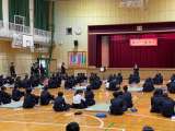 本日の全校集会の様子です。 ○表彰 ・陸上部 女子大阪市駅伝競走大会9位 ○...