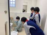 片江小学校での体験の様子です。 管理作業員さんのお手伝いをしています。 新しく設...