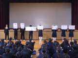 12月24日、各学年の学期末集会で保健委員会から発表を行いました。 1年生では「...