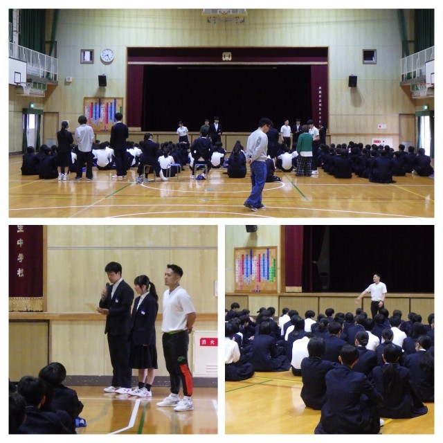 4月15日(水)3年生(70期生)学年集会を実施しました。今日は、1組代表生徒が集会の司会を務めました。山川先生(1組担任、保健体育科)のお話『公共の場での言動』について「公共の場」とはどのような場所...