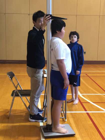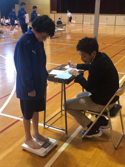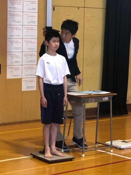 視力検査に身長、体重を測りました。生徒たちも自身の1年間の成長を数字で再確認です。