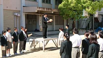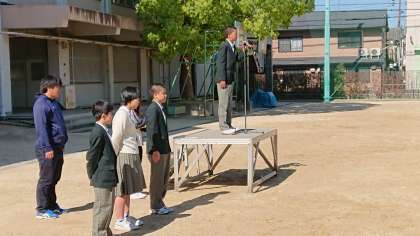 学校では朝から全校集会が行われ、認証式と校長先生からのお話がありました。
