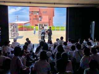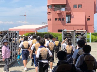 午後のプログラム カッター体験1 ライフジャケットを着用し出航準備。
