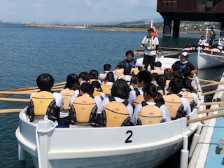 クラスごと1つの船に乗り込んで準備完了