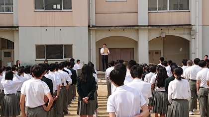 本日の全校集会 公開日 2019/05/27 更新日 2019/05/27 できごと 本日の全校集会も集合が30分前に集合整列が完了することができました。校長先生からのお話は本校が「学校情報化優良校」に認められたこと。ラグビー部に取材が来られたことについてお話がありました。これらは大池中学校の生徒や先生が頑張っているからだとおっしゃられていました。 その他に、明日から始まる修学旅行について。気温が高いので熱中症に気をつけてほしいとお話がありました。 いいね(0)