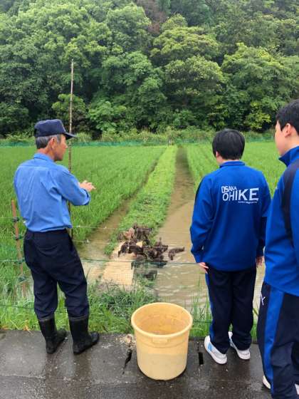 令和元年 修学旅行番外編 公開日 2019/05/29 更新日 2019/05/29 できごと 民泊巡視中、たまたま遭遇!! 無農薬で合鴨農法を行なっているご家庭です。 小鴨は22匹いて、八尾市から来たそうです。 その説明を受けている一風景です。 いいね(0)