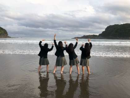 白浜海水浴場にて、雨も上がり海に連れてきてもらっていました。