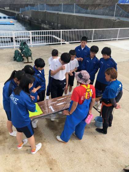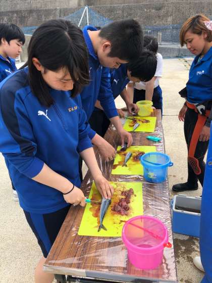 イルカのエサの学習をしたり、エサを捌いたり、イルカに触れたりしました。