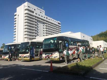 その後、バスに分乗し土佐ロイヤルホテルを後に一路吉野川へ。