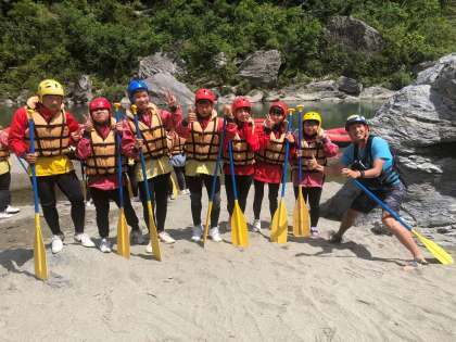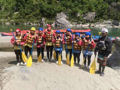 令和元年 修学旅行 其の五十九 公開日 2019/05/30 更新日 2019/05/30 お知らせ バスに乗り、ラフティングの出発地点へ、川のほとりでボート毎に命をあづける船頭さん、いやインストラクターとハイポーズ! この後、後ろのボートが絶叫マシンに変わるとは…つゆ知らず…。 画像はこの際、連発で行きたいと思います。 いいね(0)