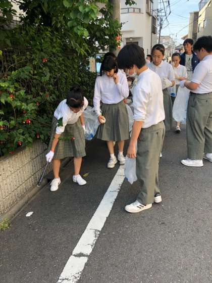 生徒たちは軍手を持参し、道端に落ちていたゴミをたくさん拾ってくれました。中にはサッカーシューズや大きな金属ゴミを拾った生徒もいて、達成感を感じることができました。
