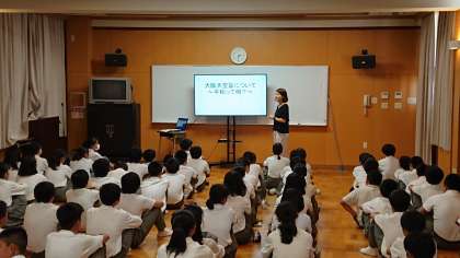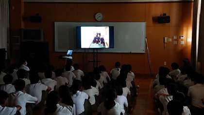 去る昨日4日の6限目、2年生は平和学習のため、多目的室に集まっていました。