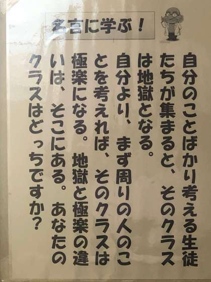 きっと生徒たちは、ただ何となく教室に行くまでに読んだ名言だったものが、学校生活で様々な経験を積んでいくうちに、ある日その言葉の意味するものにハタと気付き、読み返してくれる事でしょう!