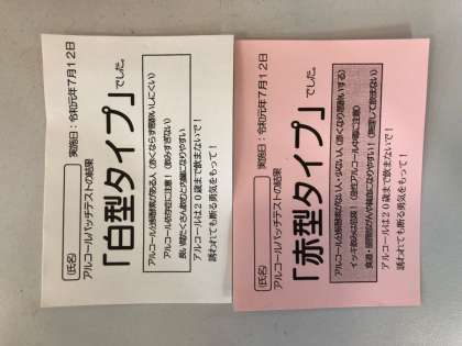 アルコールパッチテストでは、アルコールを分解できるかできないかを調べ、「白型タイプ」「赤型タイプ」を受け取っていました。