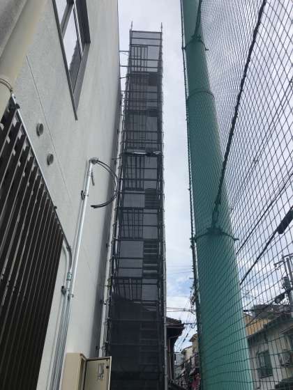 お盆開けから、本校南館に足場が組まれ、屋上に太陽光発電のためのソーラーパネルの設置が行われています。