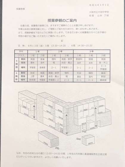 その最後の日の金曜日は、2学期最初の授業参観日です。