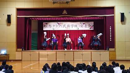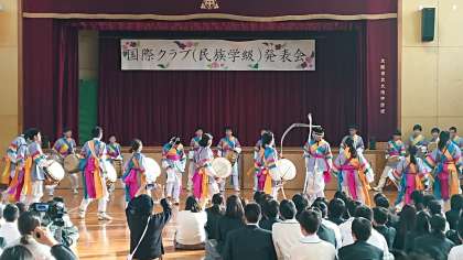 つづくプンムルは、ケンガリ(小鉦)・チン(銅鑼)・チャンゴ(杖鼓)・プッ(太鼓)を長い時間をかけて練習を積み重ねていました。昼休みの時間も練習し、本番に不安が残っていましたが大成功!無事に終えることができました。
