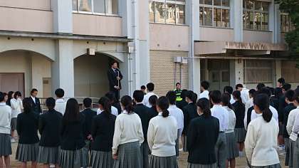 全校集会 其の一 公開日 2019/11/14 更新日 2019/11/14 できごと 今週は月曜日が雨のため、12日に全校集会が行われました。 校長先生からは先週末に行われた国際クラブ発表会についてや今週の合唱コンクールについてお話をいただきました。 いいね(0)