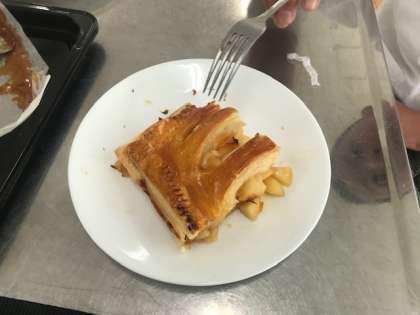 班の仲間と協力し、自分たちの力で作り上げたアップルパイ!