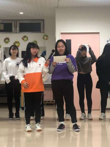 地域貢献 サンボラム慰問 其の一 公開日 2020/01/08 更新日 2020/01/08 お知らせ 昨年の12月18日 に在日コリアン高齢者支援センター『サンボラム』へ、国際クラブ民族学級の生徒達が慰問に出かけました。 この民族学級による慰問活動は、今年度で3年目になります。 早くから楽しみにしておられたハラボジやハルモニの為に、一生懸命練習し、今日を迎えました。 3年生の司会進行で、先ずはアンニョンハシムニカ! いいね(0)