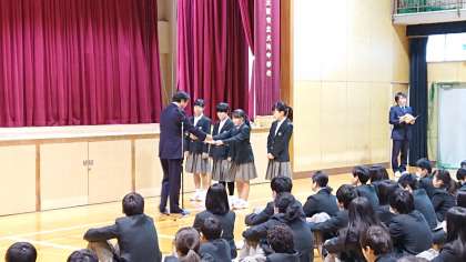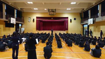 校長先生からは「干支の神話について」、「みんなの顔がとてもいい表情をしている」とお話をいただきました。特に3年生の顔つきが引き締まってきて、凛々しく光っており、きっと冬休みに受験に向けて勉強をしてきたのだなぁと感じました。