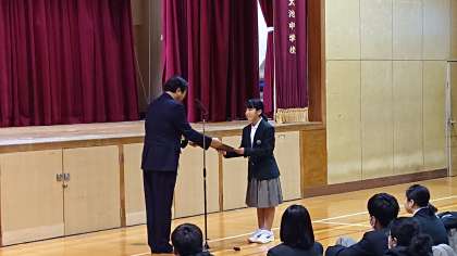 賞状の伝達です。