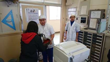 あるお店に体験に行った二人は学校に出前を運んでくれました。1人は元気よく、もう一人は緊張しながら職員室に来てくれました。