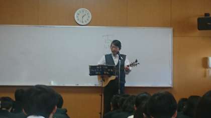 2月6日、1年生で取り組んでいる部落問題学習の講師として、以前大池中学校に勤めておられ、「大池中学校PTAおやじバンド」のメンバーでもあり、現在は全人教の事務局でお仕事をされている古川正博先生に来ていただいて、お話をうかがいました。
