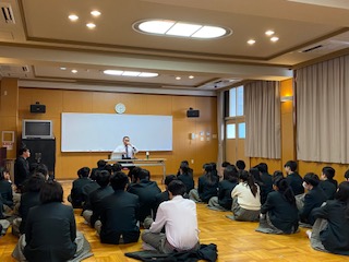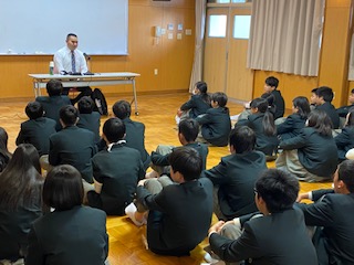 昨日、5時間目の時間に大阪市立早川福祉会館点字図書室でご勤務されている、濱崎雄三さんをお招きして、『視覚障がい』についての講演を行っていただきました。