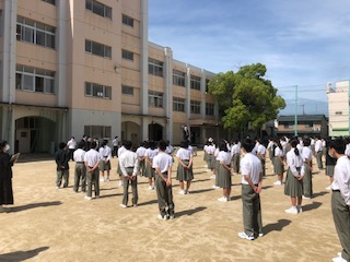 学校再開初日の朝は、着任式、始業式、対面式から始まりました。始業式で上田校長先生より『凡事徹底』という言葉を用いて、これからの学校生活についての講話がありました。『凡事徹底』の意味は、「凡事=当たり前のことを、徹底=すみずみまで行き届くこと」です。感染予防対策も、授業に取り組む姿勢も、『凡事徹底』してコロナがあったから…ではなく、コロナがあったのに…、コロナがあったからこそ…と話せるように、1日1日を大切に過ごしていきましょう。