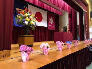 6月の入学式。舞台上は紫陽花が並び、入学をお祝いしました。