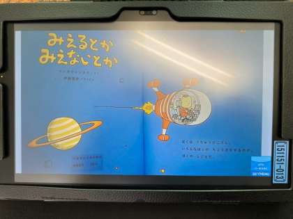 図書館にある絵本をタブレットで撮影し、自らのペースでタブレットで読み知識を深め、感想を書きました。