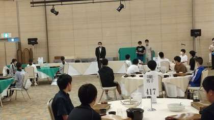 大池中の体育館なみの大広間で、入館式をしたあと、夕食です!なかなかの豪華なメューでした!