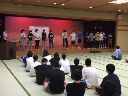 修学旅行その14 公開日 2020/09/22 更新日 2020/09/22 できごと 食事の後はお風呂を済ませ、待ちに待ったレク1日目です。実行委員の司会進行により、クラス対抗 大池74期の陣が始まりました。こちらは白熱しております。 いいね(0)
