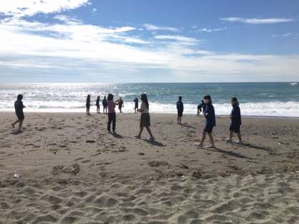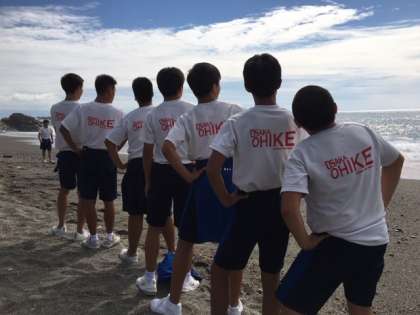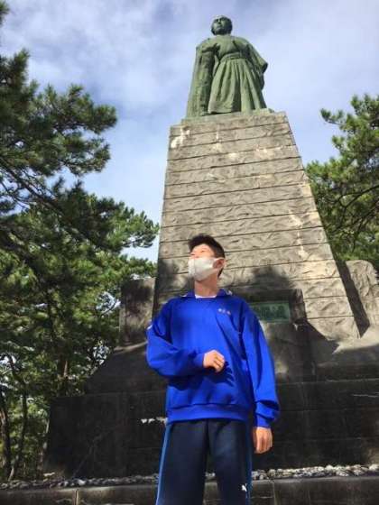 太陽の光を受け、豪快に水しぶきを上げる桂浜のそのスケールの大きさに圧倒されました。開放的な海岸でクラス写真をとり、それぞれ海を満喫しました。次は、かつおのたたき体験です。
