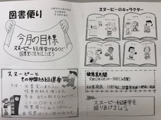 図書室では10月、スヌーピーの生誕70周年を記念して「スヌーピー総選挙」を実施しています。昼休みに図書室に来て、読書とともにこの「スヌーピー総選挙」に参加してください!