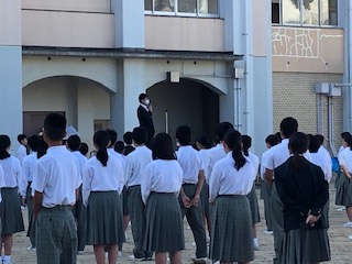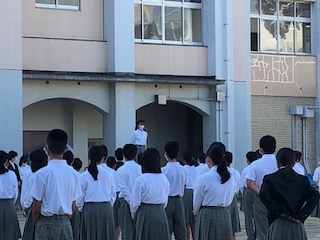 週末の雨があがり、秋晴れのなか全校集会から今週がスタートしました。