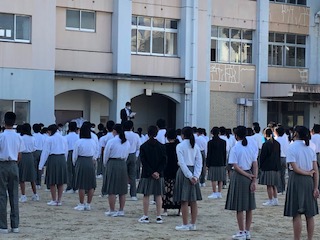 今朝の全校集会では、出展された生徒の表彰が行われました。