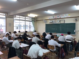 進路獲得に向けて、大事なテスト。教室にはピンと張りつめた緊張感が漂っています。