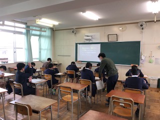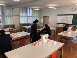 家庭科の授業では、ミシンを使って立体マスクを作りました。