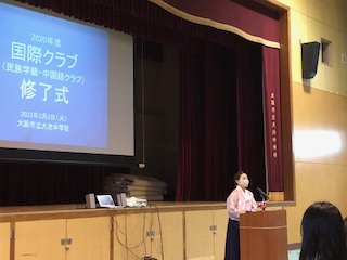国際クラブの活動は中学校を卒業するとなくなってしまう人がほとんどだと思いますが、自分のルーツに誇りを持ち、自分の人生を堂々と切り拓いて歩んでいってくれることを願っています。