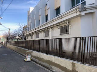 学校の東校舎を囲んでいたブロック塀の取り壊し工事がほどんど終了し、工事用の柵が取り除かれました。