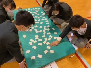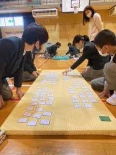 2年生最後の学年の取り組みとして、コロナで延期になっていた百人一首大会を行いました。
