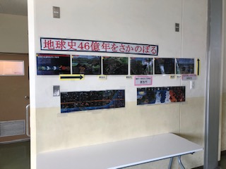 2年生の教室がある4階のエレベーターホールに、地球史を紹介しています。