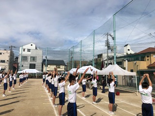第73回体育大会3 公開日 2021/09/22 更新日 2021/09/22 できごと プログラム1番 合同体操 全員がしっかり大きく身体を動かし準備運動しました。列もタイミングも合っていて、集団演技を見ているようでした。 いいね(0)