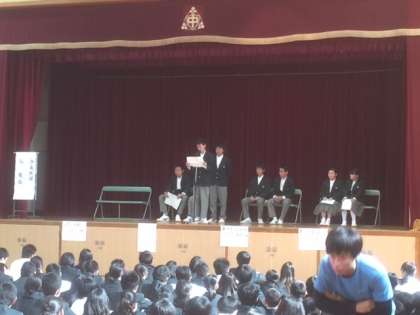 昨日の6時間目に体育館で、「平成27年度 前期生徒会役員選挙立会演説会」が行われました。