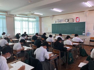 今日の全員、一生懸命テスト問題にチャレンジしていました。
